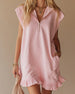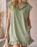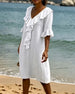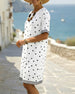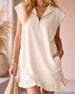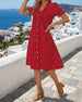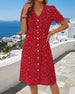 SPESIFIKASJONER Stil: Uformelt Materiale: 100% Bomull Kjole type: Rett Kjole Kjolens lengde: Knelengde Halslinje: V-hals Mønstertype: Ensfarget Ermetype: Volanger erme Erme lengde: Kort erme Detaljer: Knapper Passform type: Vanlig Årstid: Vår,Sommer Anledning: Daglig Pakken inkluderer: 1 x Kjole STØRRELSESTABELL (cm) Størrelse Bryst Le...