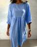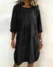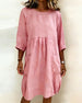 SPESIFIKASJONER Stil: Uformelt Materiale: 20% Lin 80% Bomull Kjole type: A-line Kjolens lengde: Knelengde Halslinje: Rund hals Mønstertype: Ensfarget Ermetype: Vanlig erme Erme lengde: 3/4 erme Detaljer: Lomme Passform type: Vanlig Årstid: Vår,Sommer Anledning: Daglig Pakken inkluderer: 1 x Kjole STØRRELSESTABELL (cm) Størrelse Bryst L...
