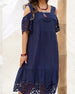 SPESIFIKASJONER Stil: Uformelt Materiale: Denim Kjole type: A-line Kjolens lengde: Knelengde Halslinje: Rund hals Mønstertype: Ensfarget Ermetype: Volanger erme Erme lengde: Halv erme Detaljer: Knapper Passform type: Vanlig Årstid: Vår,Sommer Anledning: Daglig Pakken inkluderer: 1 x Kjole STØRRELSESTABELL (cm) Størrelse Bryst Lengde S 97 1...