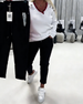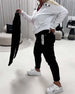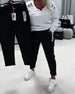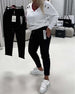 Sett Dames Rundhals Topp og Tettsittende Bukser med Snøring
