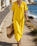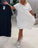 SPESIFIKASJONER Stil: Uformelt Materiale: 100% Bomull Kjole type: Rett Kjole Kjolens lengde: Midi Halslinje: V-hals Mønstertype: Ensfarget Ermetype: Vanlig erme Erme lengde: Kort erme Passform type: Vanlig Årstid: Vår,Sommer Anledning: Daglig Pakken inkluderer: 1 x Kjole STØRRELSESTABELL (cm) Størrelse Bryst Lengde S 97 120 M 101 121.5 ...