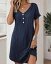 SPESIFIKASJONER Stil: Uformelt Materiale: Bomullsblandinger Kjole type: Rett Kjole Kjolens lengde: Over kneet Halslinje: V-hals Mønstertype: Ensfarget Ermetype: Vanlig erme Erme lengde: Kort erme Detaljer: Knapper,Rynket Passform type: Vanlig Årstid: Vår,Sommer Anledning: Daglig Pakken inkluderer: 1 x Kjole STØRRELSESTABELL (cm) Størrelse Br...