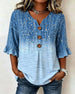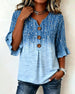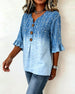 SPESIFIKASJONER Topp type: Bluser Stil: Uformelt Materiale: Bomullsblandinger Anledning: Daglig Halslinje: V-hals Mønstertype: Trykt Ermetype: Volanger erme Erme lengde: 3/4 erme Passform type: Vanlig Årstid: Vår,Sommer Detaljer: Knapper Pakken inkluderer: 1 x Bluse STØRRELSESTABELL (cm) Størrelse Bryst Lengde S 92 68 M 96 69.5 L 100 ...