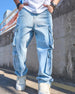 Jeans Herre Løs Solid Klaff Lomme Cargo Denim