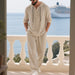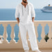 Opplev den perfekte balansen mellom komfort og stil med vårt todelte hvilessett. Settet består av en crewneck topp og matchende bukser, begge laget av mykt, pustende stoff som holder deg avslappet og elegant. Hvorfor Du Vil Elske DetModerne Crewneck-designKlassisk møter moderne. Den avslappede toppen har en ren crewneck-utringning med subtile fo...