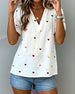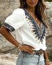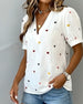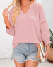 Bluse Dame 3/4 Lykteerme Casual V-Hals T-Skjorte Plissert Løs Gjennombrutt