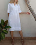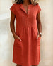 SPESIFIKASJONER Stil: Uformelt Materiale: Bomullsblandinger Kjole type: Rett Kjole Kjolens lengde: Midi Halslinje: Slag Mønstertype: Ensfarget Ermetype: Vanlig erme Erme lengde: Kort erme Detaljer: Knapper Passform type: Vanlig Årstid: Vår,Sommer Anledning: Daglig Pakken inkluderer: 1 x Kjole STØRRELSESTABELL (cm) Størrelse Bryst Lengde S ...