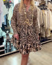 SPESIFIKASJONER Stil: Uformelt Materiale: Bomullsblandinger Kjole type: A-line Kjolens lengde: Over kneet Halslinje: V-hals Mønstertype: Leopard Ermetype: Vanlig erme Erme lengde: Langermet Passform type: Vanlig Årstid: Vår,Sommer Anledning: Daglig Pakken inkluderer: 1 x Kjole STØRRELSESTABELL (cm) Størrelse Bryst Lengde S 97 95 M 101 96...