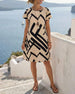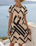 SPESIFIKASJONER Stil: Uformelt Materiale: Bomullsblandinger Kjole type: A-line Kjolens lengde: Knelengde Halslinje: Rund hals Mønstertype: Geometrisk trykk Ermetype: Vanlig erme Erme lengde: Kort erme Passform type: Vanlig Årstid: Vår,Sommer Anledning: Daglig Pakken inkluderer: 1 x Kjole STØRRELSESTABELL (cm) Størrelse Bryst Lengde S 97 10...