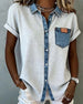 T-Skjorte Denim Patchwork Nedbrettet Krage
