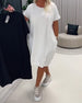 SPESIFIKASJONER Stil: Uformelt Materiale: Bomullsblandinger Kjole type: Rett Kjole Kjolens lengde: Knelengde Halslinje: Rund hals Mønstertype: Ensfarget Ermetype: Vanlig erme Erme lengde: Kort erme Passform type: Vanlig Årstid: Vår,Sommer Anledning: Daglig Pakken inkluderer: 1 x Kjole STØRRELSESTABELL (cm) Størrelse Bryst Lengde S 97 100 ...