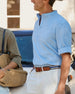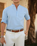 Topper Herre Lin Bomull 3/4-Erm Henley-Skjorte, Casual Lett Sommer