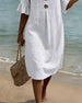 SPESIFIKASJONER Stil: Uformelt Materiale: Bomull og lin Kjole type: Rett Kjole Kjolens lengde: Knelengde Halslinje: V-hals Mønstertype: Ensfarget Ermetype: Volanger erme Erme lengde: Kort erme Detaljer: Knapper Passform type: Vanlig Årstid: Vår,Sommer Anledning: Daglig Pakken inkluderer: 1 x Kjole STØRRELSESTABELL (cm) Størrelse Bryst Lengde...