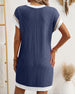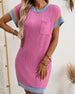 SPESIFIKASJONER Stil: Uformelt Materiale: Bomullsblandinger Kjole type: A-line Kjolens lengde: Over kneet Halslinje: Rund hals Mønstertype: Fargeblokk Ermetype: Vanlig erme Erme lengde: Kort erme Detaljer: Lomme Passform type: Vanlig Årstid: Vår,Sommer Anledning: Daglig Pakken inkluderer: 1 x Kjole STØRRELSESTABELL (cm) Size Bust (cm) Length...