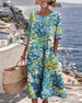 SPESIFIKASJONER Stil: Uformelt Materiale: Bomullsblandinger Kjole type: A-line Kjolens lengde: Knelengde Halslinje: V-hals Mønstertype: Trykt Ermetype: Utvidet erme Erme lengde: 3/4 erme Passform type: Vanlig Årstid: Vår,Sommer Anledning: Daglig Pakken inkluderer: 1 x Kjole STØRRELSESTABELL (cm) Størrelse Bryst Lengde S 97 100 M 101 101....