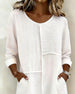 SPESIFIKASJONER Topp type: Bluser Stil: Uformelt Materiale: 20% Lin 80% Bomull Anledning: Daglig Halslinje: V-hals Mønstertype: Ensfarget Ermetype: Vanlig erme Erme lengde: Langermet Passform type: Vanlig Årstid: Vår,Sommer,Høst Detaljer: Rufsete Pakken inkluderer: 1 x Bluse STØRRELSESTABELL (cm) Størrelse Bryst Lengde S 97 65 M 1...