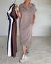 SPESIFIKASJONER Stil: Uformelt Materiale: Bomullsblandinger Kjole type: Rett Kjole Kjolens lengde: Over kneet Halslinje: V-hals Mønstertype: Stripete Ermetype: Vanlig erme Erme lengde: Halv erme Detaljer: Lomme Passform type: Vanlig Årstid: Vår,Sommer Anledning: Daglig Pakken inkluderer: 1 x Kjole STØRRELSESTABELL (cm) Størrelse Bryst Le...