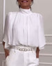 Icon1 Ensfarget bluse med høy krage med sommerfuglermer