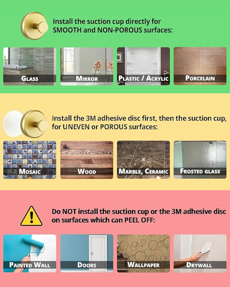 Sugekroker passer til flate og ikke-porøse overflater som glass, speil, marmor, keramikk, rustfritt stål, tre, akryl, plast og laminat.