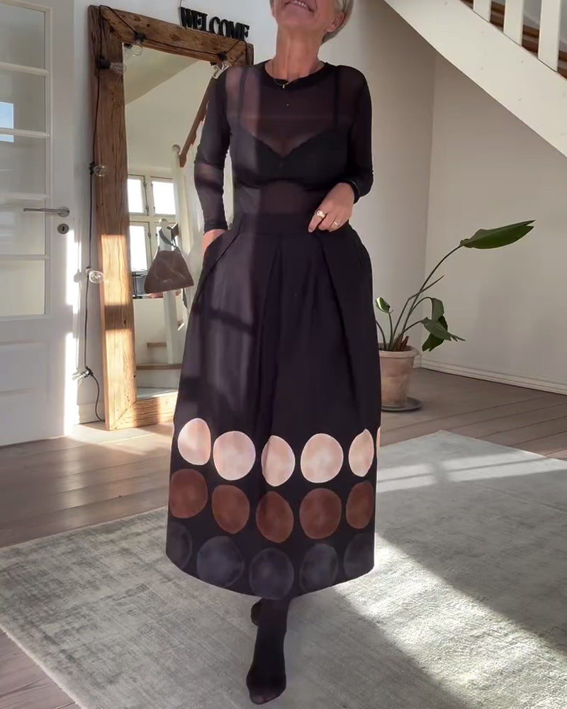 Sett Blonde Og Meshbluse Med Drapert Slipkjole