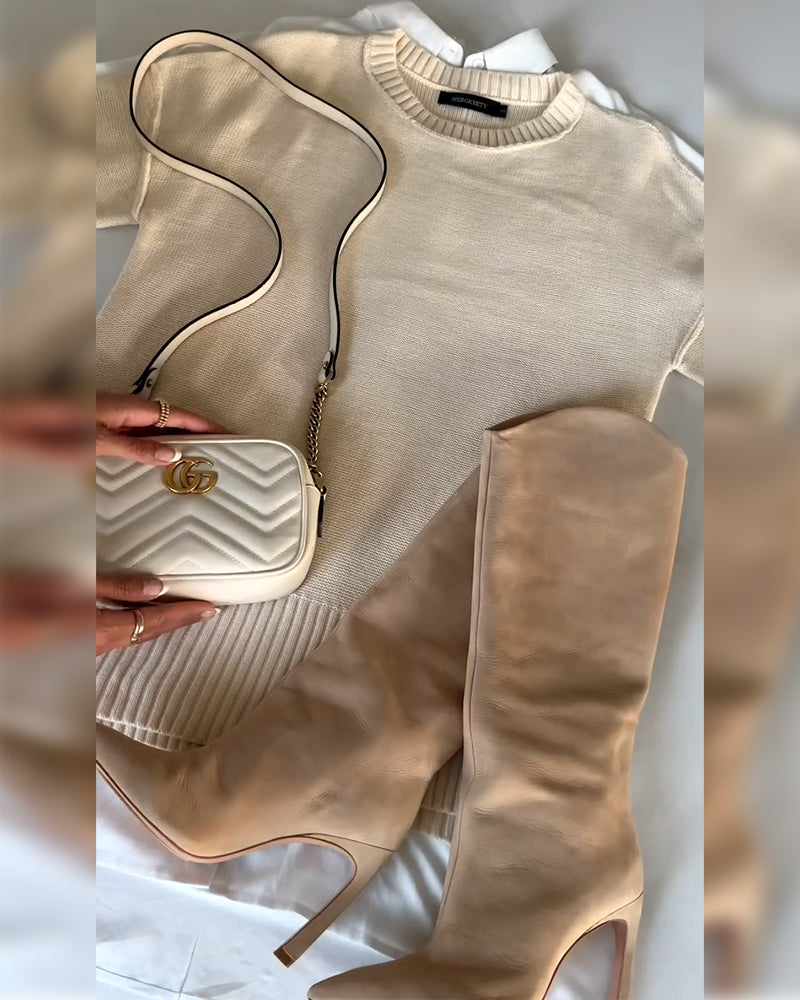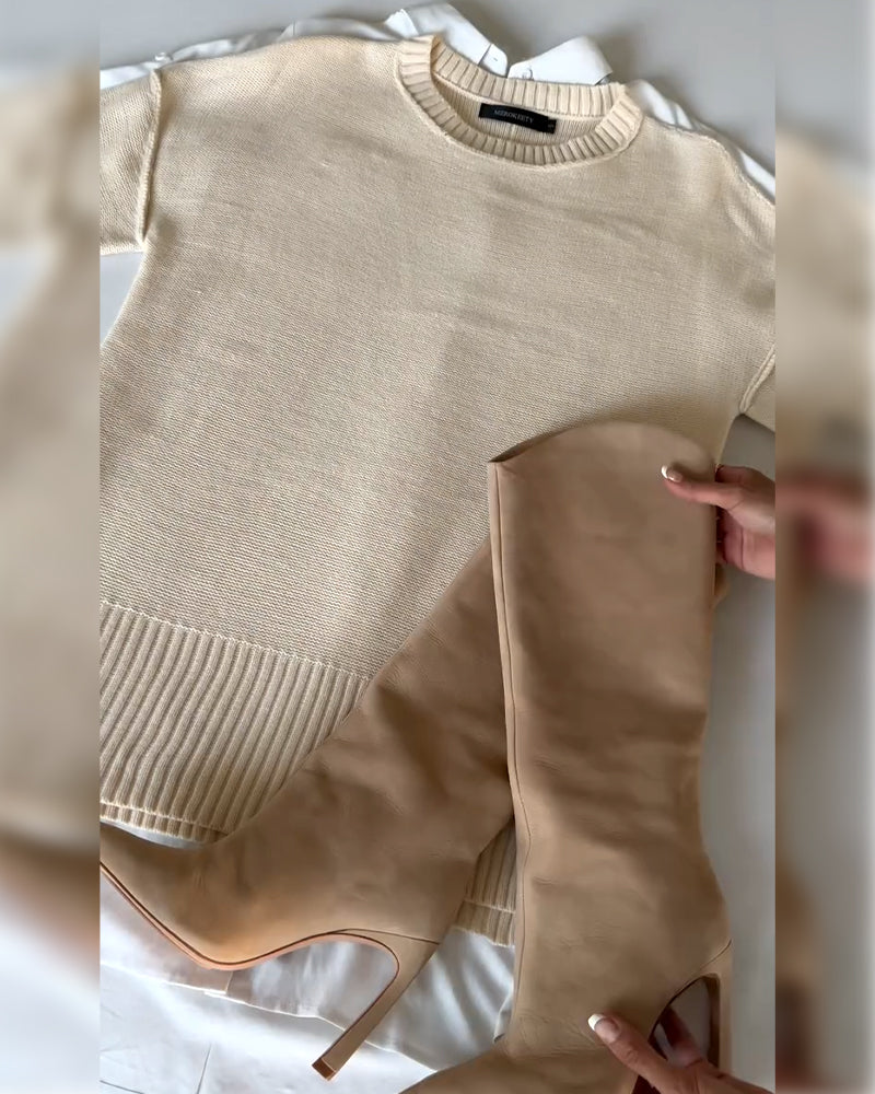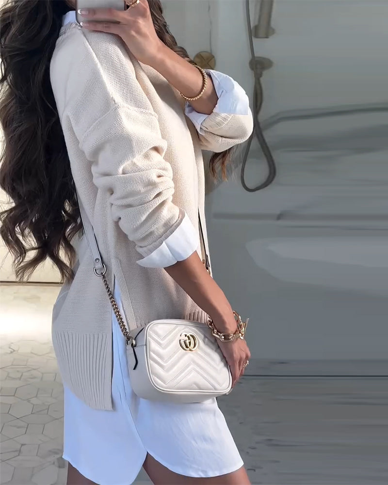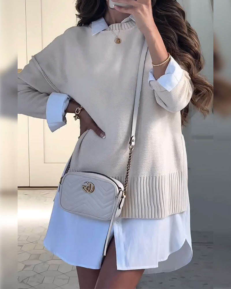 NY Icon1 Todelt Sett Med Genser Med Rund Hals Og Splittkant Og Skjorte