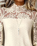SPESIFIKASJONER Topp type: Topper Stil: Uformelt Materiale: Bomullsblandinger,Blonder Anledning: Daglig Halslinje: Høy hals Mønstertype: Blomstret Ermetype: Vanlig erme Erme lengde: Langermet Passform type: Vanlig Årstid: Høst,Vinter Detaljer: Blonder Pakken inkluderer: 1 x Topp STØRRELSESTABELL (cm) Størrelse Bryst Lengde S 97 65 M 101 ...