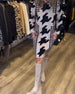 SPESIFIKASJONER Stil: Uformelt, Elegant Materiale: 96 % polyester, 4 % spandex Kjole type: Rett Kjole Kjolens lengde: Knelengde Halslinje: Høy hals Mønstertype: Hundetann Ermetype: Vanlig erme Erme lengde: Langermet Passform type: Vanlig Årstid: Vår, Høst, Vinter Anledning: Daglig, Ferie, Arbeid Pakken inkluderer: 1 x Kjole STØRRELSESTAB...