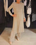 SPESIFIKASJONER Topp type: Bluser Stil: Uformelt Materiale: 100% Polyester Anledning: Daglig Halslinje: V-hals Mønstertype: Ensfarget Ermetype: Flaggermus erme Erme lengde: Langermet Bukselengde: Lang Passform type: Løs Årstid: Vår, Sommer, Høst Detaljer: Snøring Pakken inkluderer: 1 x Bluse, 1 x Bukser STØRRELSESTABELL (cm) St...