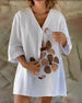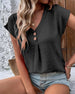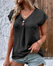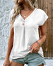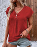 SPESIFIKASJONER Topp type: T skjorte Stil: Ferie Materiale: Bomullsblandinger Anledning: Daglig Halslinje: V-hals Mønstertype: Ensfarget Ermetype: Vanlig erme Erme lengde: Kort erme Passform type: Vanlig Årstid: Vår, Sommer, Høst Detaljer: Knapper Pakken inkluderer: 1 x T-skjorte STØRRELSESTABELL (cm) Størrelse Bryst(cm) Lengde(c...