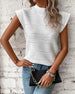 Strikket Topp V-Utskjæring Sexig Perlembrodert Erm