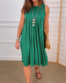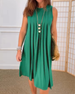 Ermeløs plissert kjole med rund hals