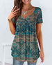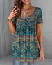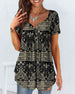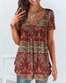 SPESIFIKASJONER Stil: Uformelt Topp type: T skjorte Materiale: Bomull, Polyester Anledning: Daglig Halslinje: V-hals Mønstertype: Trykt Ermetype: Vanlig erme Erme lengde: Kort erme Passform type: Løs Årstid: Sommer Detaljer: Rynket Pakken inkluderer: 1 x T-skjorte STØRRELSESTABELL (cm) Størrelse Bryst(cm) Skulder(cm) Lengde(cm) ...