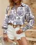 Bluse Med Retro Knapp Detaljer Og Små Florale Trykk