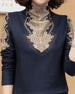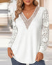 Elegant t-skjorte med v-hals og blonder, langermet
