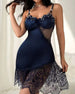 SPESIFIKASJONER Stil: Sexy Materiale: Bomullsblandinger Kjole type: A-line Kjolens lengde: Over kneet Halslinje: Spaghetti stropper Mønstertype: Prikk Erme lengde: Ermeløs Detaljer: Lappeverk,Blonder Passform type: Skinny Årstid: Vår,Sommer,Høst,Vinter Anledning: Daglig Pakken inkluderer: 1 x Søvn kjole STØRRELSESTABELL (cm) Størrelse Bry...