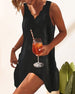Enkel kortermet uformell kjole med bokstavtrykk