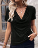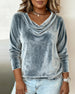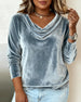 Plussize Topp Med Drapert Krage Og Lange Ermer