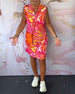 SPESIFIKASJONER Stil: Uformelt Materiale: Bomullsblandinger Kjole type: Rett Kjole Kjolens lengde: Knelengde Halslinje: Rund hals Mønstertype: Trykt Ermetype: Vanlig erme Erme lengde: Kort erme Passform type: Vanlig Årstid: Vår, Sommer, Høst Anledning: Daglig Pakken inkluderer: 1 x Kjole STØRRELSESTABELL (cm) Størrelse Bryst Lengde...