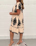 SPESIFIKASJONER Stil: Uformelt Materiale: Bomullsblandinger Kjole type: A-line Kjolens lengde: Midi Halslinje: Slag Mønstertype: Trykt Ermetype: Vanlig erme Erme lengde: 3/4 erme Detaljer: Snøre opp, Knapper, Spalte Passform type: Vanlig Årstid: Sommer Anledning: Daglig, Ferie Pakken inkluderer: 1 x Kjole (med belte) STØRRELSESTABELL (cm) St...