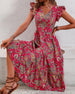 SPESIFIKASJONER Stil: Uformelt Kjole type: A-line Kjolens lengde: Maxi Halslinje: V-hals Mønstertype: Trykt Materiale: 5%Spandex, 95%Polyester Ermetype: Volanger erme Erme lengde: Kort erme Detaljer: Spalte Passform type: Vanlig Årstid: Vår, Sommer, Høst Anledning: Daglig Pakken inkluderer: 1 x Kjole STØRRELSESTABELL (cm) Større...