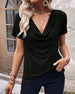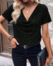 SPESIFIKASJONER Topp type: Topper Stil: Uformelt Materiale: Bomullsblandinger Anledning: Daglig Halslinje: V-hals Mønstertype: Ensfarget Ermetype: Vanlig erme Erme lengde: Kort erme Passform type: Vanlig Årstid: Vår, Sommer, Høst Detaljer: Rynket Pakken inkluderer: 1 x Topp STØRRELSESTABELL (cm) Størrelse Bryst Lengde S 95 65 ...