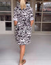 SPESIFIKASJONER Stil: Uformelt Materiale: 3% Spandex, 97% Polyester Kjole type: Rett Kjole Kjolens lengde: Knelengde Halslinje: V-hals Mønstertype: Trykt Ermetype: Vanlig erme Erme lengde: 3/4 erme Passform type: Vanlig Årstid: Vår, Sommer Anledning: Daglig, Arbeid Pakken inkluderer: 1 x Kjole STØRRELSESTABELL (cm) Størrelse Br...
