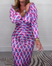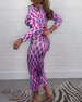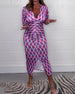 SPESIFIKASJONER Stil: Sexy Materiale: Bomullsblandinger Kjole type: Bodycon Kjolens lengde: Maxi Halslinje: V-hals Mønstertype: Trykt Ermetype: Vanlig erme Erme lengde: Langermet Passform type: Skinny Årstid: Vår, Sommer Anledning: Daglig, Ferie, Parti Pakken inkluderer: 1 x Kjole STØRRELSESTABELL (cm) Størrelse Bryst Lengde S 95 120 M 1...