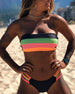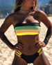 SPESIFIKASJONER Stil: Ferie, Sexy Materiale: Chinlon, Spandex Anledning: Ferie Mønstertype: Fargeblokk Erme lengde: Ermeløs Topp type: Bikini BH type: Bøyle-fri BH Truse type: Thongs Passform type: Skinny Årstid: Sommer Detaljer: Lappeverk Pakken inkluderer: 1 x Bikini STØRRELSESTABELL (cm) Størrelse Bryst Topplengde Bunnlengde M...