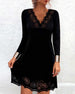 SPESIFIKASJONER Stil: Uformelt Materiale: Bomullsblandinger,Mesh Kjole type: A-line Halslinje: V-hals Mønstertype: Ensfarget Ermetype: Lanterne erme Erme lengde: Langermet Passform type: Vanlig Årstid: Høst,Vinter Anledning: Daglig Pakken inkluderer: 1 x Kjole STØRRELSESTABELL (cm) Størrelse Bryst Lengde S 92 83 M 96 84.5 L 100 86...