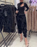 Strikket Topp V-Utskjæring Sexig Perlembrodert Erm