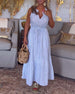 SPESIFIKASJONER Stil: Uformelt Materiale: Bomullsblandinger Kjole type: A-line Kjolens lengde: Maxi Halslinje: V-hals Mønstertype: Stripete Erme lengde: Ermeløs Detaljer: Snøring Passform type: Vanlig Årstid: Sommer Anledning: Daglig Pakken inkluderer: 1 x Kjole STØRRELSESTABELL (cm) Størrelse Bryst Lengde S 95 128 M 100 129 L 105 130 ...