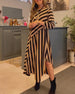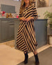 SPESIFIKASJONER Stil: Uformelt Materiale: Bomullsblandinger Kjolens lengde: Midi Halslinje: Rund hals Mønstertype: Stripete Ermetype: Vanlig erme Erme lengde: 3/4 erme Passform type: Vanlig Årstid: Vår, Høst Anledning: Daglig Pakken inkluderer: 1 x Kjole STØRRELSESTABELL (cm) Størrelse Bryst Lengde S 95 120 M 100 121.5 L 105 123 ...