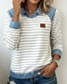 SPESIFIKASJONER Topp type: Gensere Stil: Uformelt Materiale: Bomullsblandinger,Denim Anledning: Daglig,Gate Halslinje: Skjortekrage Mønstertype: Stripete Ermetype: Vanlig erme Erme lengde: Langermet Passform type: Vanlig Årstid: Vår,Høst,Vinter Detaljer: Lappeverk Pakken inkluderer: 1 x Genser STØRRELSESTABELL (cm) Størrelse Bryst Lengde S...