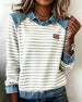 Sweatshirt Med Jeanspanel, Stripmønster Og Casual Stemning